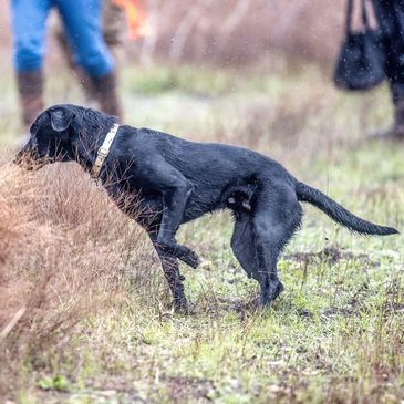 Roux is a petite girl at 48 pounds, but is full of love! She is British field bred and was born in Ireland. We are training her to duck hunt, and she was so fun to hunt with this season. She is also competing in shed hunting and has her working shed dog title! In the spring we'll start her on the dock, and we really think she'll be fun to watch. She also has taken very well to scent work. She currently has her novice title and working towards her advanced title. She's health tested to CHIC and will be in our breeding program. We love this little girl- she's a great mix of love and drive in a small package. OFA CHIC number 189225